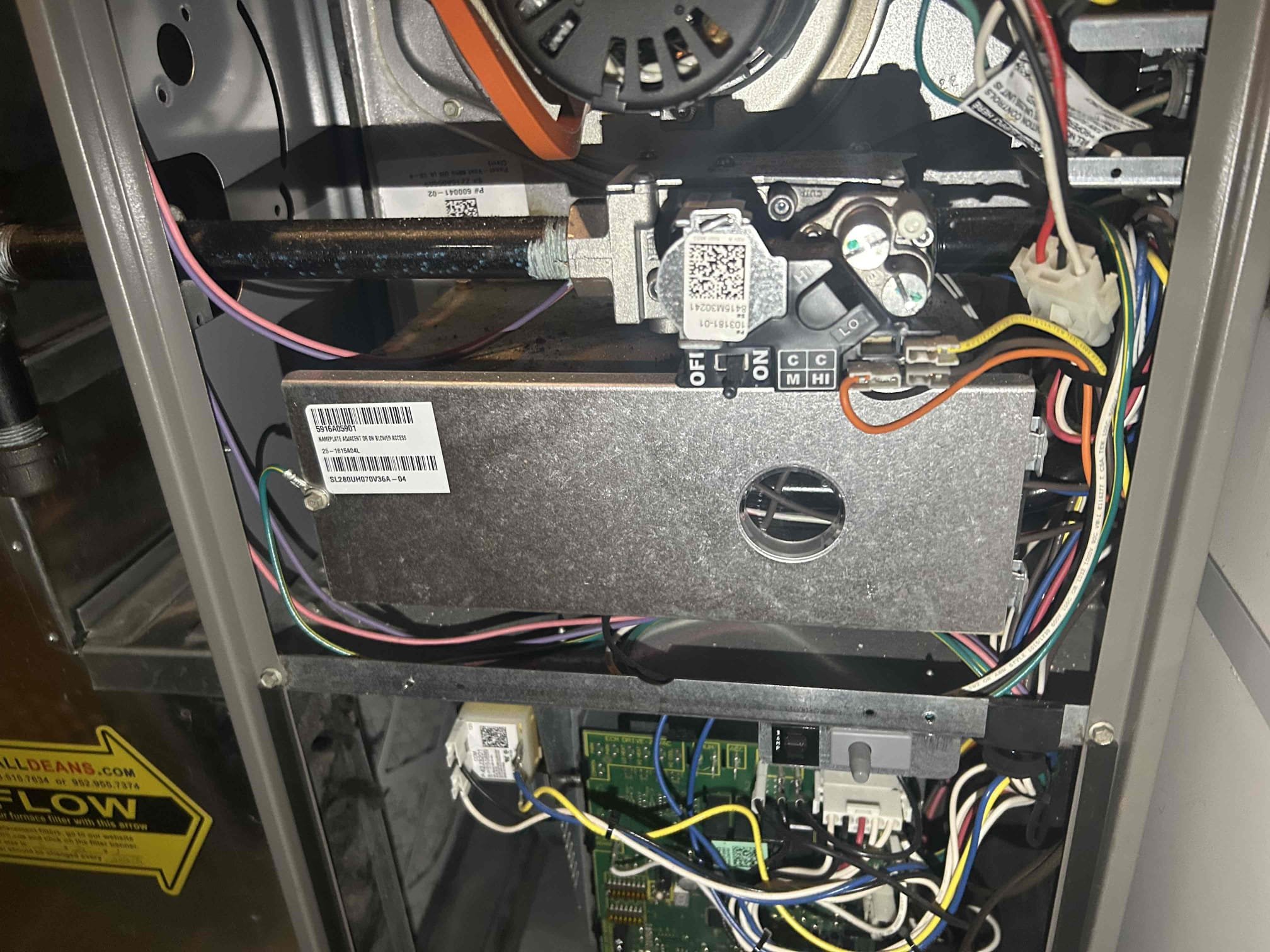 A malfunctioning furnace was expertly replaced by Deans Home Services, installing a new Amana AR9T 80% efficiency gas furnace. Our team ensured proper electrical hook-up and integrated a Honeywell thermostat for precise temperature control. This upgrade enhances heating efficiency and reliability, providing consistent comfort and peace of mind for the homeowner. **Service Type: HVAC Installation**
