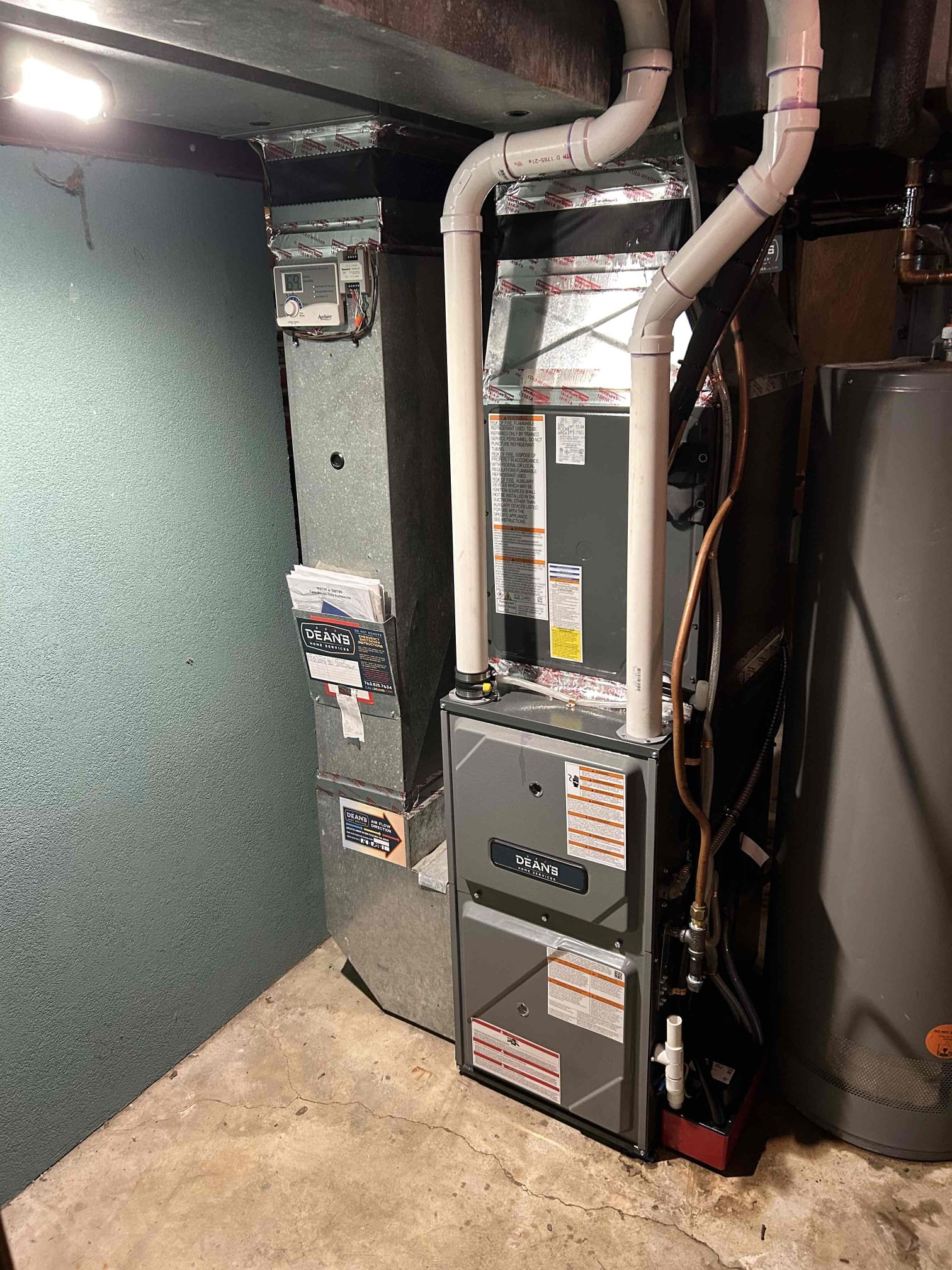 Deans Home Services successfully completed a comprehensive HVAC installation for a client on 8/19/2025. Our team of skilled technicians, led by Bennett B, meticulously worked on site for 8 hours to install a 60,000 BTU Condensing 96% Two Stage Furnace and a 13.4 SEER2 2 Ton Air Conditioning Condensing Unit and Evaporator Coil. Our top-of-the-line furnace provides energy-efficient heating while reducing noise levels. The advanced air conditioning unit and evaporator coil ensure consistent cooling and extended lifespan. The HVAC installation promotes optimal performance, energy savings, quiet operations, and above all, offers our customers the convenience of a comfortable, controlled environment. **Service Type: HVAC Installation**